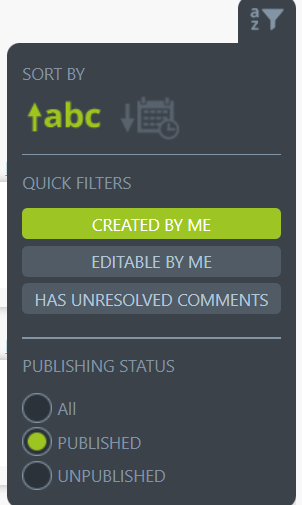 - suodattaa julkaisutilan mukaan: kaikki, julkaistut, julkaisemattomat