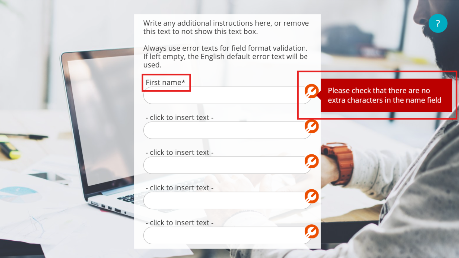 - Täytä kentät: Täytä lomakkeelle avautuvat pakolliset (*) ja tarvittavat vapaaehtoiset kentät.